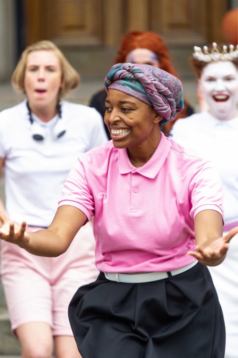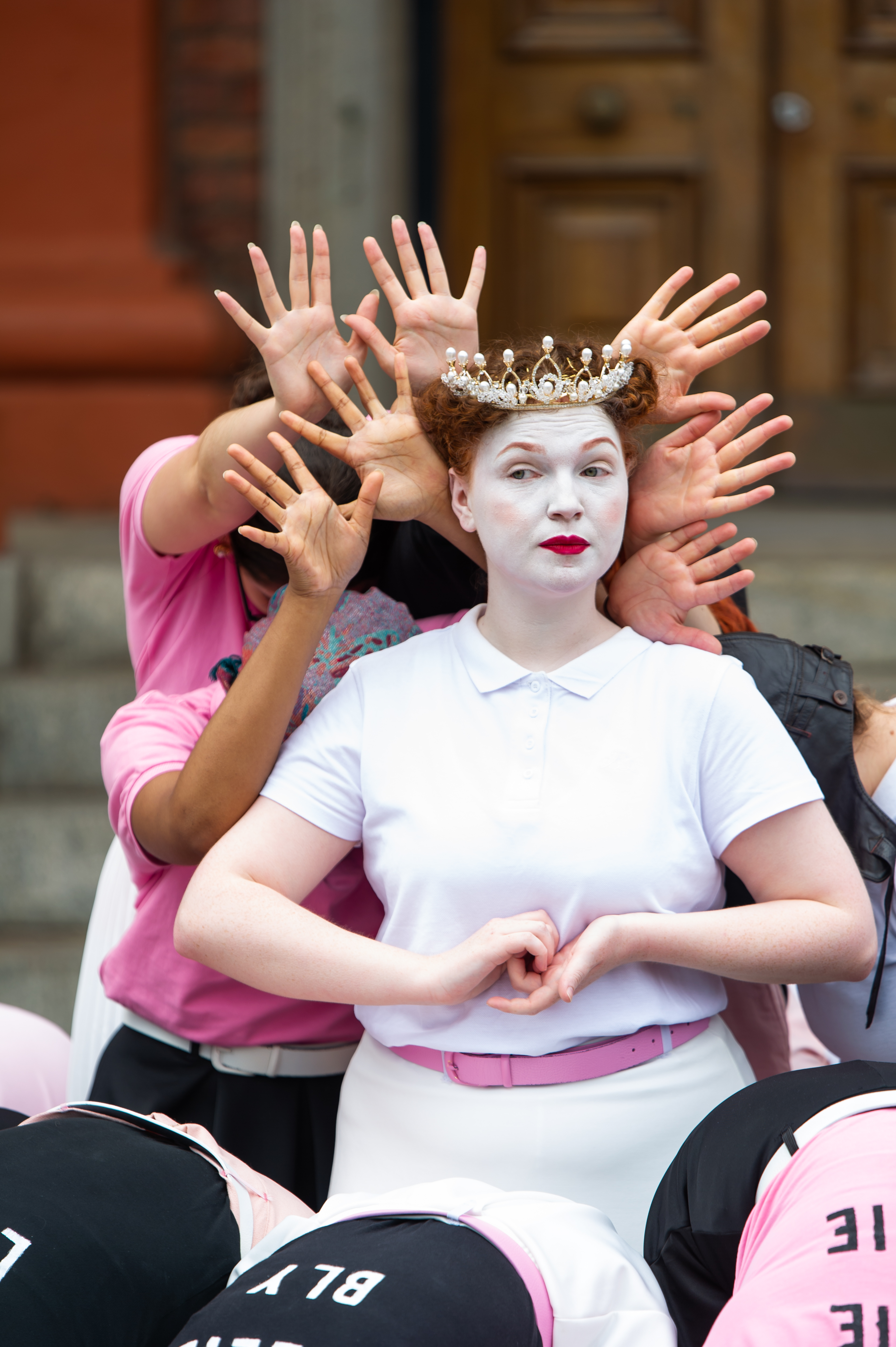 The piece is 30 minutes long and is suitable for both outdoor and indoor spaces and for all ages. Its bold, funny, feisty and empowering! It can be supported with workshops and discussions about gender equality.
